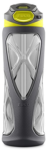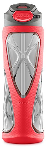 The ZULU Vapor water bottle is the ultimate way to keep you hydrated. Its one-touch flip lid reveals a soft straw that's sized for rapid intake. Vapor's leak-proof locking lid is perfect for carefree transport to the gym. High-quality Tritan plastic combined with a protective sleeve provides ultimate impact protection. The sports grip will keep the bottle from slipping, even during a sweaty workout. Certified BPA, Phthalates and PVC free.