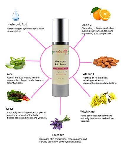Hyaluronic Acid occurs naturally in young skin. Topical applications are used to treat wrinkled skin and help reverse the signs of aging by drawing moisture from the environment to the skin for a superb moisturizing effect.