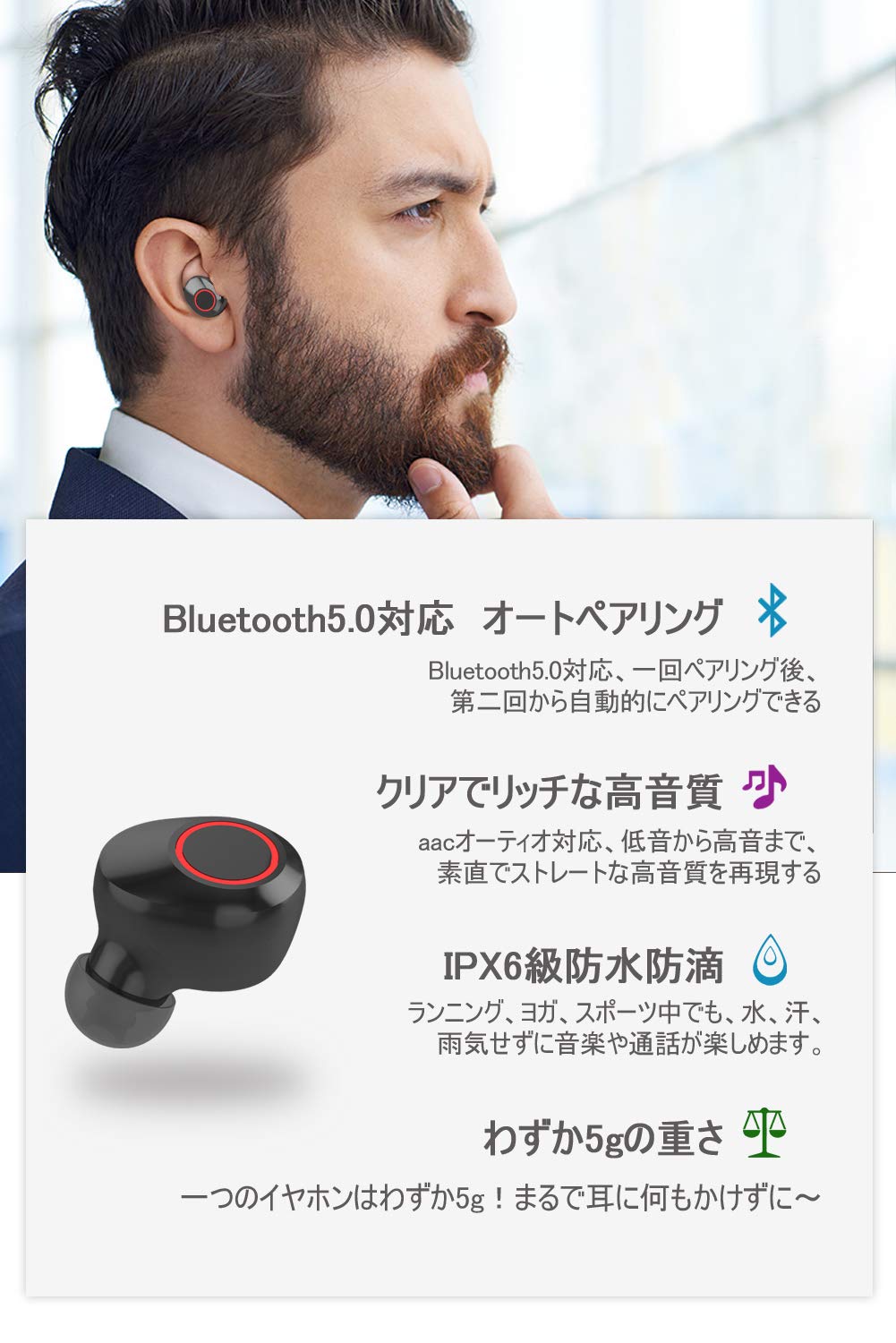 【 片耳・両耳対応~簡単自動同期&自動ペアリング 】左右両耳通用可能、毎回「L」と「R」を確認する必要がありません。優れた装着感と洗練されたデザインを両立し、外れにくく長時間の使用でも快適!複雑な操作が不要で、第一回Bluetooth機器と成功にペアリングしたあと、二度と手動でペアリングする必要もなく、自動的に接続します!