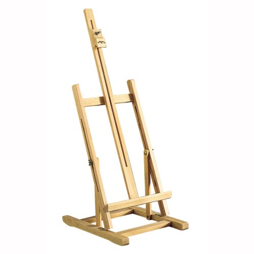 -. Feature : Hフレーム構造で、作業に理想的な角度を作るための装置がついている。最大で57cm(F12号タテ)のキャンバスが使える。