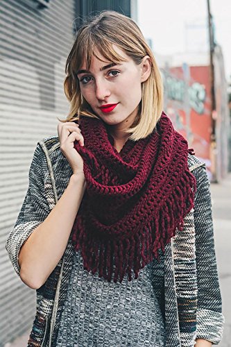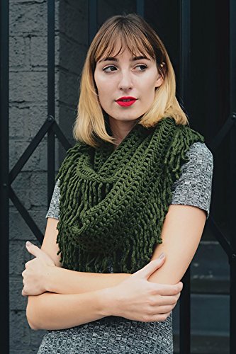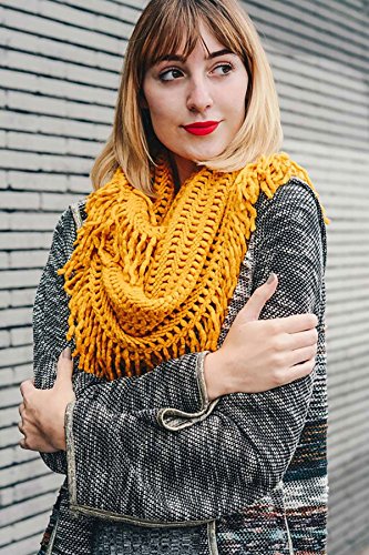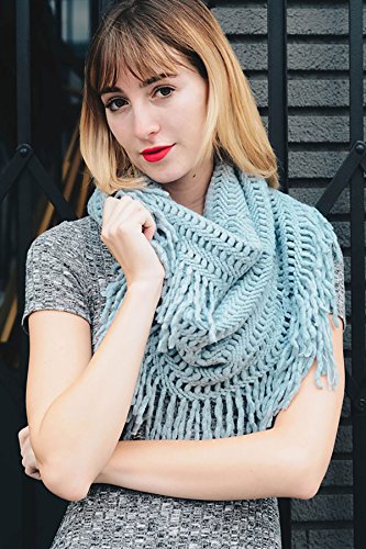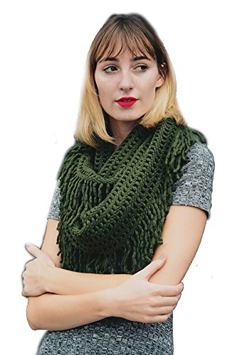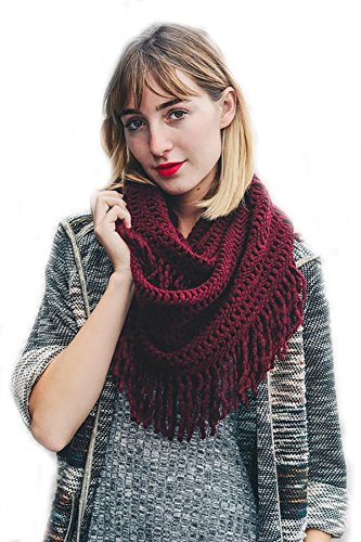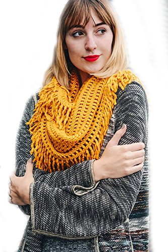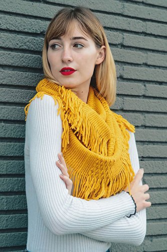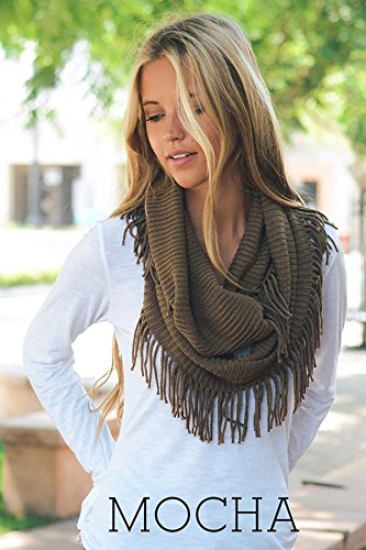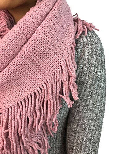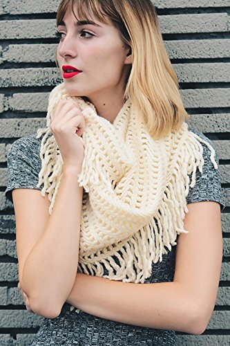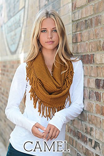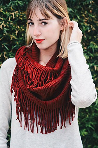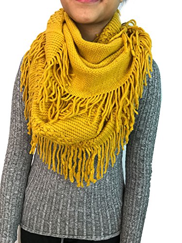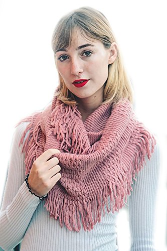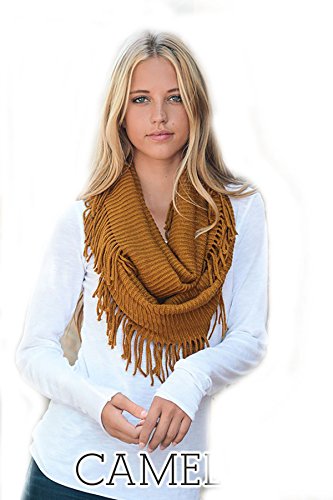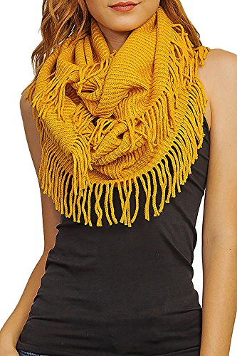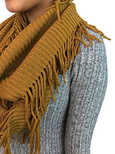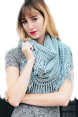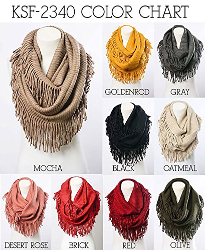 | Women's Winter Knit Ribbed Fringe Pointelle Lattice Tassel Infinity Scarf Cowl Wrap |