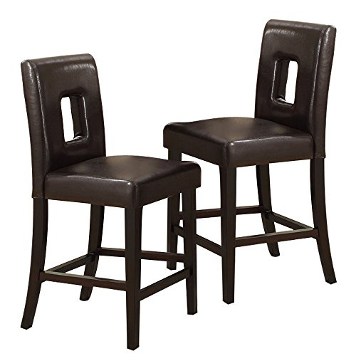 -. Feature : 2 Counter Hieght Chairs / 24" Seat Height / Espresso Veneer / Dark Brown Bonded Leather / Parson Design