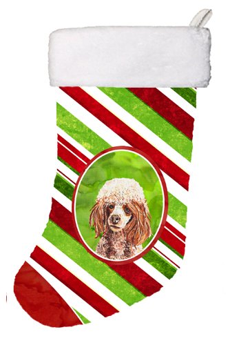 Caroline's Treasures Red Miniature Poodle Candy Cane Christmas Stocking, 11 x 18", Mulitcolor