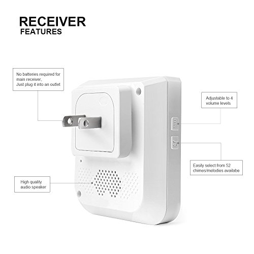 Various Music Available Each door chime is built-in with a total of 52 tones, from traditional Ding Dong to various classic melodies, you'll never get bored of hearing it by changing tones from time to time. And also,there are 4 levels of adjustable sound volume to meet different requires.