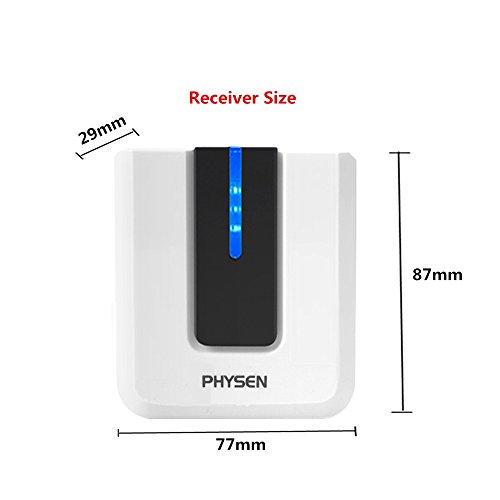 Can receive signal sended from matched push buttons at the range of up to 1,000ft / 300m. According to your need, you can choose the amount of receivers, for different rooms and floors