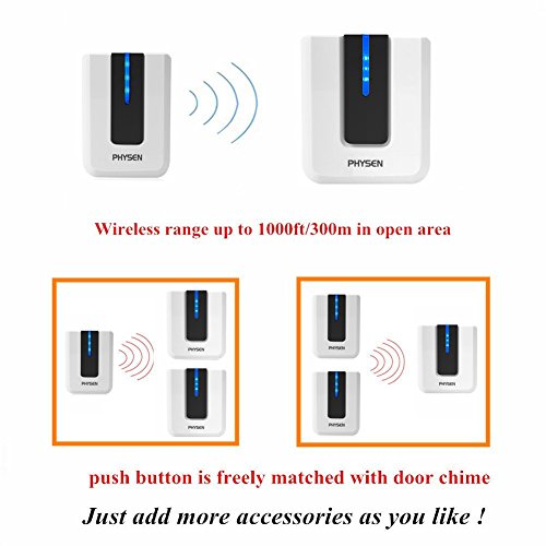 Over 50+ different ring tones for easy choice, 4 levels volume adjustable from 25db to 100db. LED indicator shows blue light when pressing the push button which adds a fantastic atmosphere