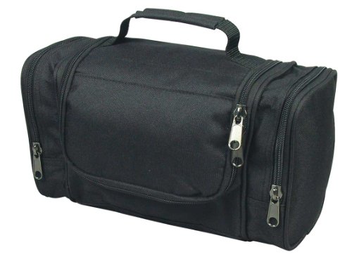 -. Feature : FEATURES: WIDE OPEN MAIN COMPARTMENT W/PLASTIC COVERED MULTI-PURPOSE ORGANIZERS, 2 SIDE ZIPPERED COMPARTMENT, EXTRA HANGING HOOK / MATERIAL: 600D POLYESTER/PU / SIZE: 12" X 7" X 5-1/4" / COLOR: BLACK (DOES NOT COME WITH ACCESSORIES) / INTENDED USE: Travel, Lage Add-on, Mess kit, small travel bag