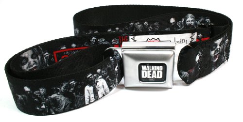 The Walking Dead is one of the most popular shows on television. It is based on the comic book series of the same name. The plot revolves around a group of humans trying to survive in a post-apocalyptic world dominated by flesh eating walkers. The real twist of the show is that the survivors are the walking dead, not the walkers. And the times are rough where you fight the dead, and fear the living. This belt has a seat belt closure.