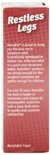 Studio : NatraBio Publisher : NatraBio Binding : Health and Beauty Product Description Anyone who has been kept up at night with that restless feeling surging through their legs knows just how annoying and disruptive it can be. NatraBio offers restless legs homeopathic medicine to provide relief for the symptoms of restlessness and tingling, jerking and twitching, and the constant urge to move. Find relief from the constant annoyance with restless legs and its homeopathic formula of natural ingredients. 0