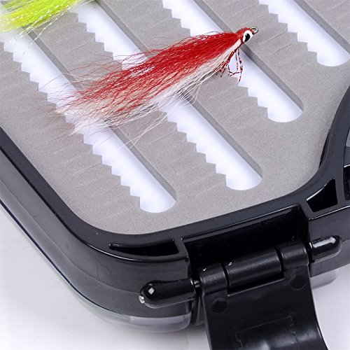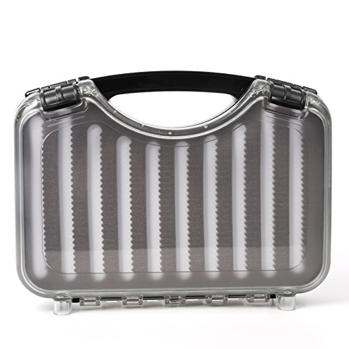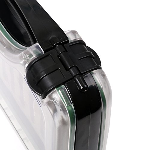 -. Feature : 2 sides clear plastic lids for quick fly view / Completely waterproof case will float if dropped in water / Tough ABS plastic-built to protect your fly investment / Stainless steel pins and double clasps / High fly capacity will hold your largest flies easily