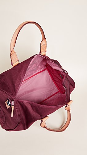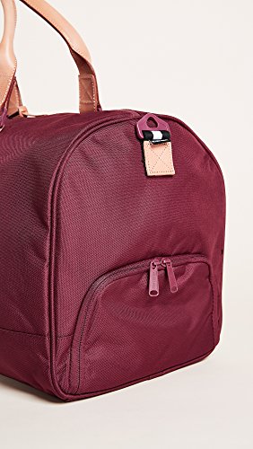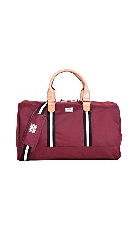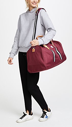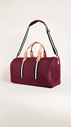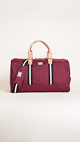 Product Description A roomy Herschel Supply Co. duffel accented with striped trim. This weekend bag features a retractable shoe compartment, double handles, and an optional padded shoulder strap. The main zip opens to a lined interior with a mesh pocket. Collapsible interior base. 0