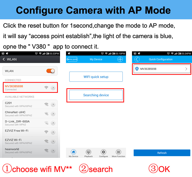 Built-in Wifi: Connect camera directely within 5m when no wifi.