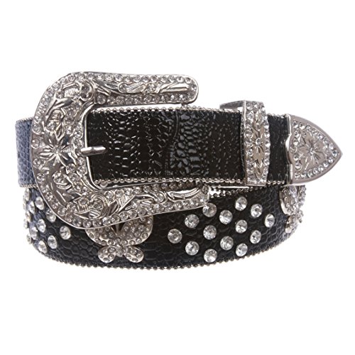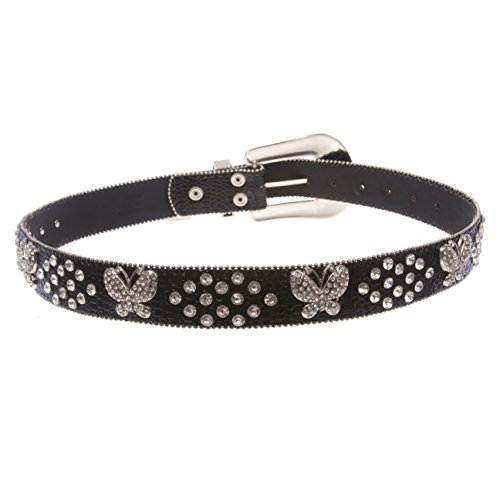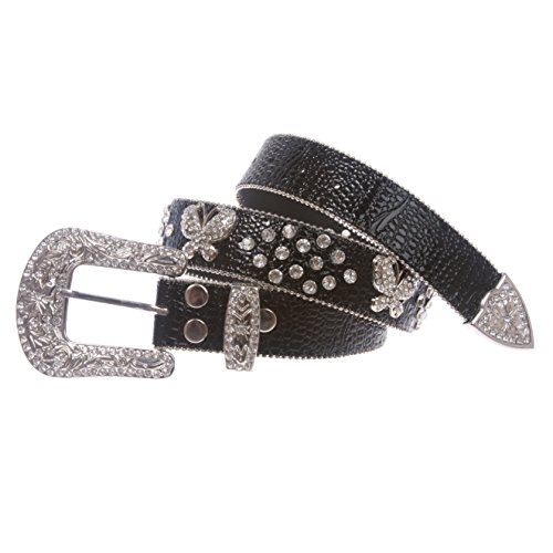 Product Description1-1/2" wide women rhinestones studded leather fashion cowgirl belt with Butterfly rhinestone-decorated western buckle set.0