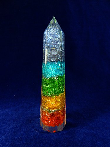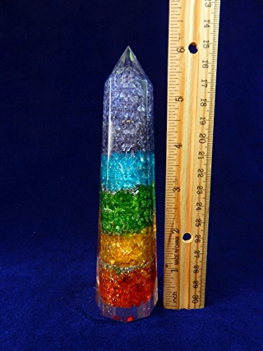 Beautiful Natural Gems in Resin Obelisk Free Standing Tower/ 8 Facet Point, Charged Chakra Reiki Metaphysical Crystal therapy with Beverly Oak's Certificate of Authenticity (7 Chakra)