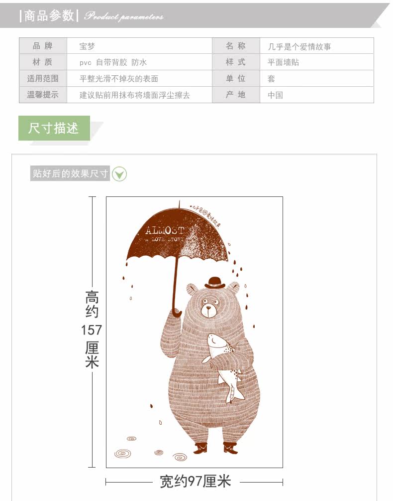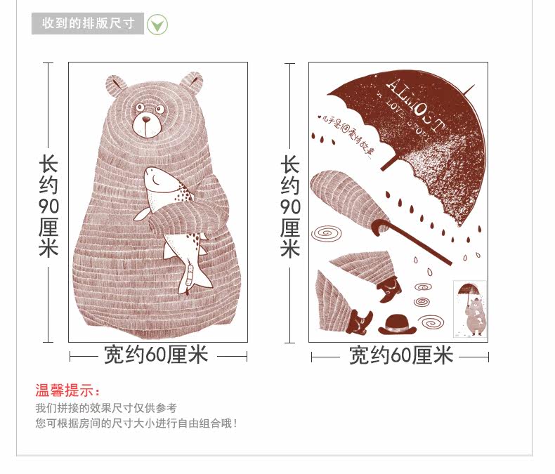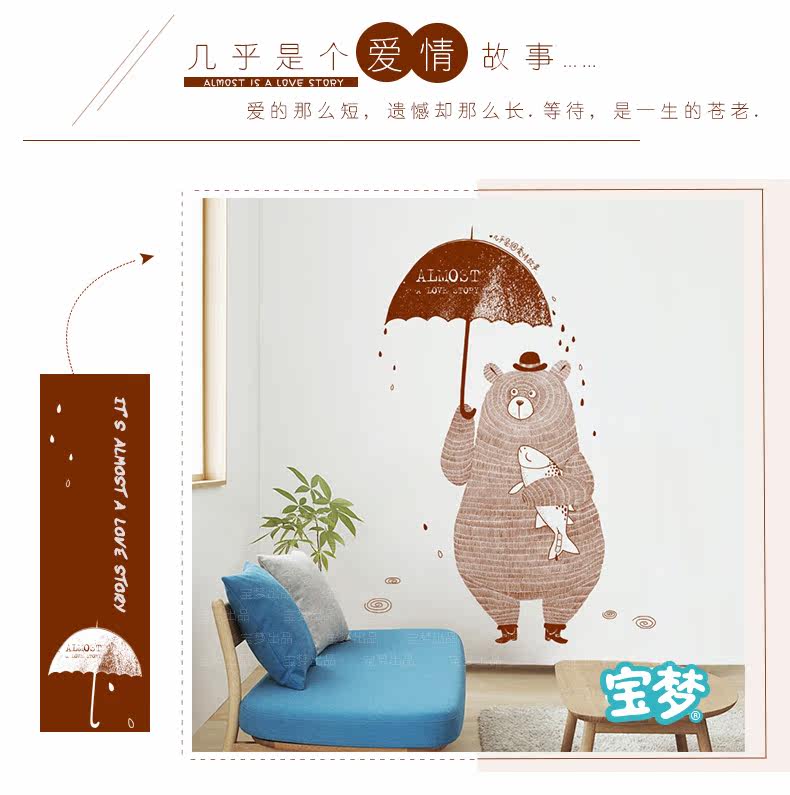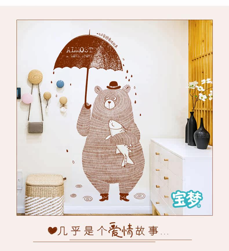 创意客厅卧室玄关装饰品墙贴纸文艺个性餐厅咖啡店铺爱情小熊贴画