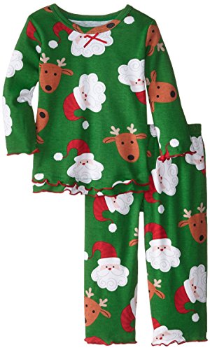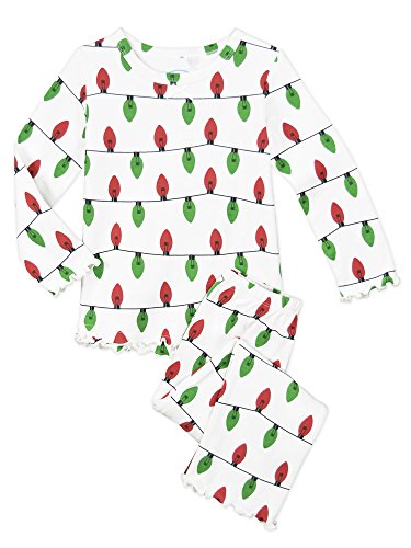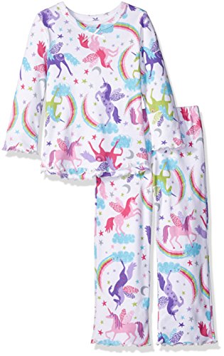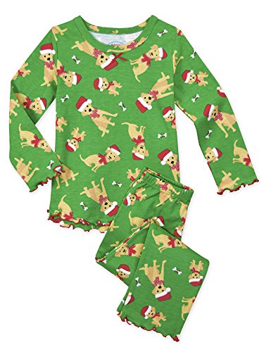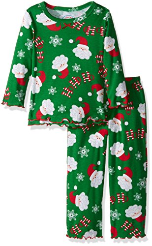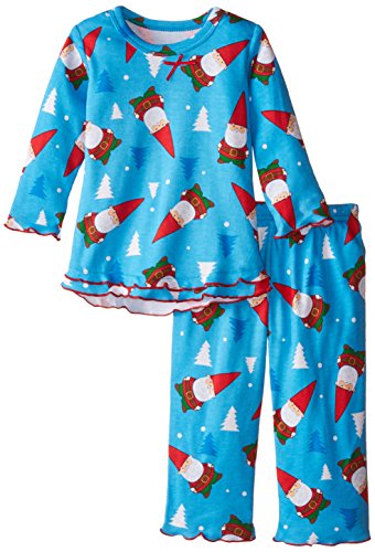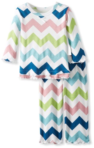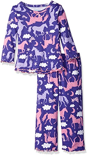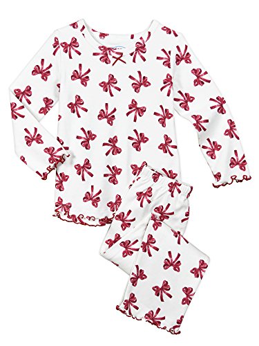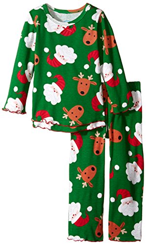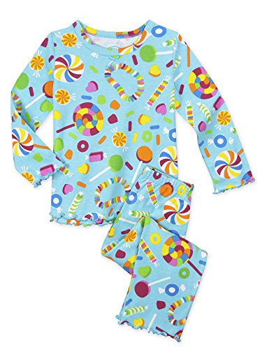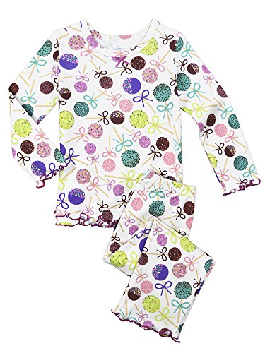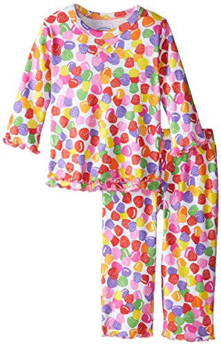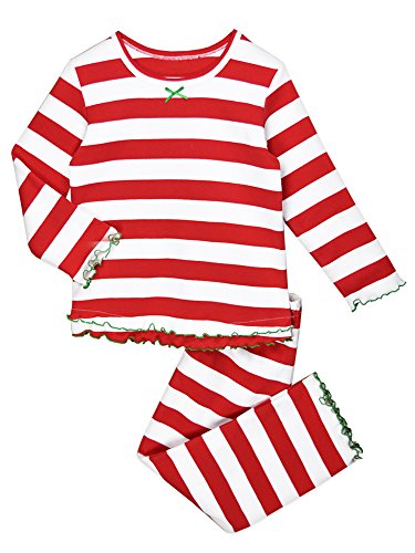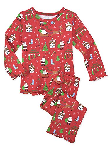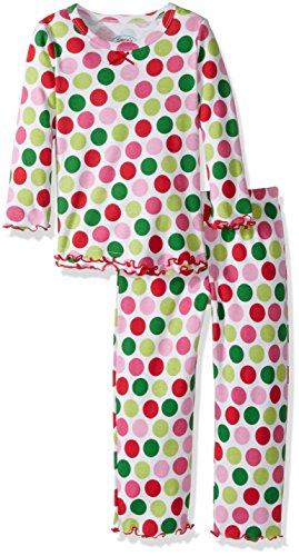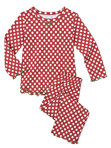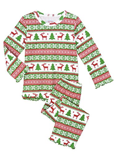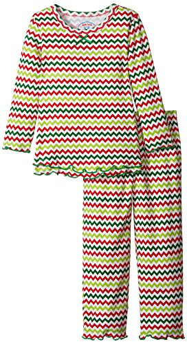 Snuggle up for a bedtime story in Sara's Prints super soft long sleeve pajama set. The prints and lettuce-edged ruffle trim speak to her sense of style while the relaxed-fit keeps her snuggly warm and comfortable. Made using 55 percent cotton and 45 percent mod acrylic, our sleepwear is inherently flame resistant without the use of topical chemical treatments. It is the cotton-mod acrylic blend that keep our sleepwear feeling soft after years and years of washes. This popular pajama set features a satin bow, and decorative stitching around the double ruffle on top hem, and single ruffle on pant.Feature