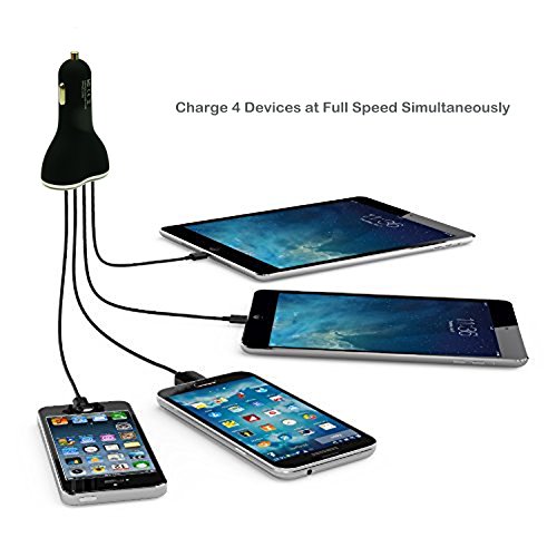 - [4-USB Port Design] 4 ports 6.8 Amps multiple ports USB car charger adapter allows you and your friends to charge 4 devices simultaneously at full charging speed while on the road.