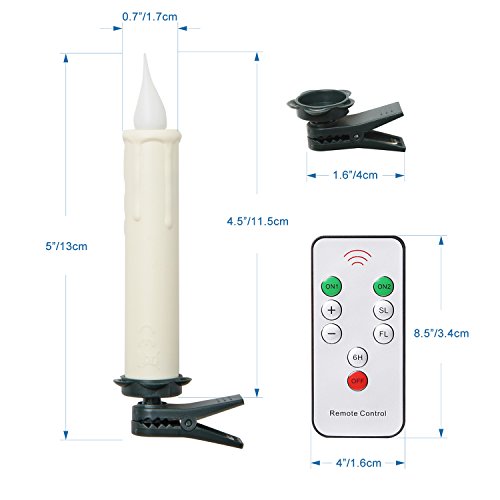 Set of 10 Led Taper Candle with Timer, Remote Control LED Christmas Tree Candles with Clip, Battery Included, Ivory