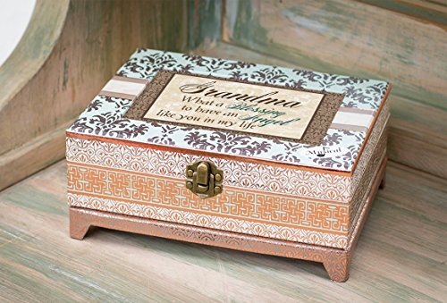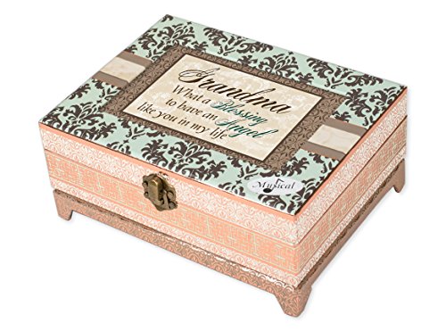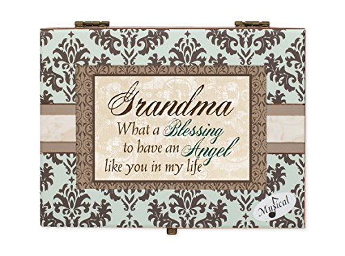 Cottage Garden Grandma Belle Papier Chest Musical Jewelry Box with Damask Finish Plays Wonderful World