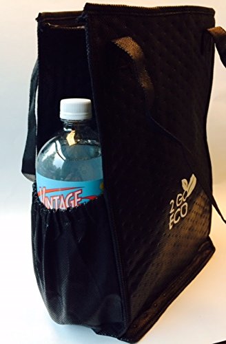 2goEco Black Eco-Friendly Lite 'n Tuff Tall Insulated Lunch Bag-Travel Cooler-Reusable Wine Tote