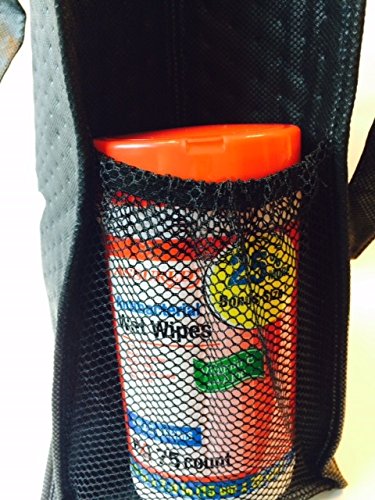 14"x9"x7" large capacity non-woven fabric bag with reinforced handles holds up to 12 cans, plus 2 side pockets for extra storage