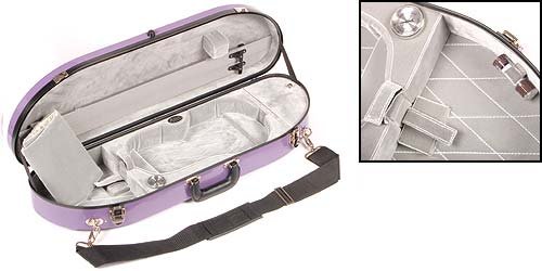 -. Feature : 4/4 Violin Size - Purple Fiberglass Shell - Protective Purple Case Bag is Included - Beautiful Silver Velvet Interior / Instrument Suspension - Velcro Instrument Neck Restraint - Hygrometer - Humistat - Velcro Shoulder Rest Holder - 2 Bow Holders - Instrument Blanket - Tail Block Sponge / Accessory Pocket - Shoulder Strap - Subway Strap - Music Pocket - Weighs Only 6.5lbs / Beautifully Designed - Economical - Perfect For Students And Professionals Alike / Practical and professional, Bobelock cases are always a great value!