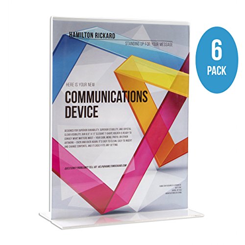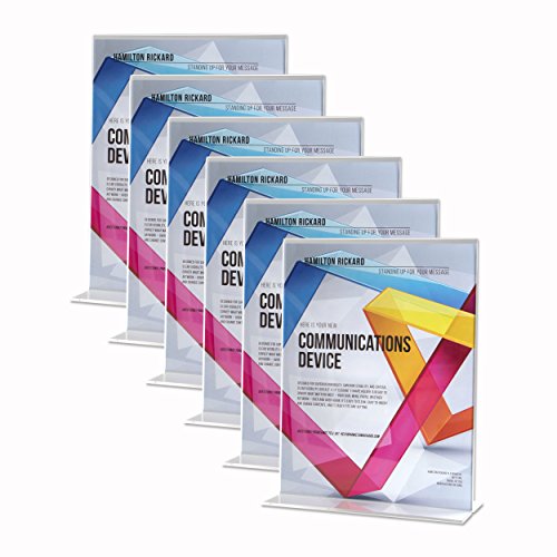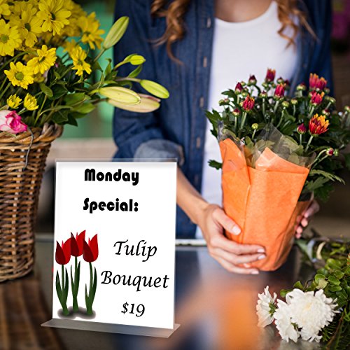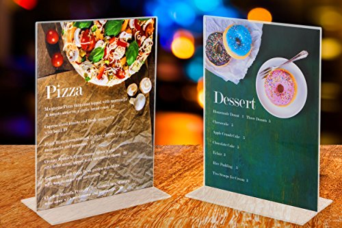 Premium Acrylic Sign Holder 8.5 x 11 Inch, Extra Thick 3 mm for Maximum Durability, Wider Base, Double-Sided, Set of 6 for Display Stands, Menu Holders, Table Card Holders, Photo Frames, Ad Frames