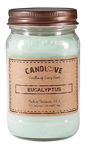 Candlove "Eucalyptus" Scented 16oz Mason Jar Candle 100% Soy Made In The USA
