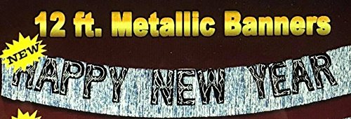 Product Description Happy New Years Glittered Silver Foil 2 Ply Mettalic Banner Decoration Party Supplies12 Ft 0