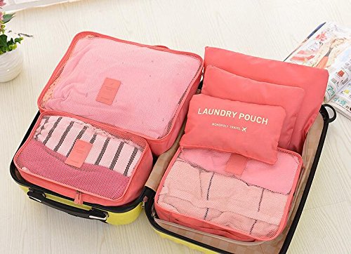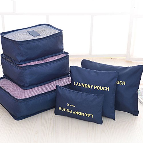 Product Description Want to clear the unbearable mess in your luggage? Want to find THE thing without getting your luggage upside down? Want to travel well without trivial bugs? Trawell is here for you! Trawell 6 Set Packing Cubes will help you to get all your belongings organized and categorized. What you will get? - 3 Packing Cubes - -Large (16.14"x11.81"x5.12") -Medium (12.20"x11.81"x5.12") -Small (11.81"x8.27"x5.12") - 3 Laundry Pouches - Large (13.78"x10.63") -Medium (11.02"x9.84") -Small (10.24"x6.30") Why Trawell? -Made with 100% environmental-friendly, recycled material. Durable and untearable. -Dust-proof. Water-proof. Keep your belongings dry and clear. Easy to clean. -Double zipper pulls. Opening/closing is simple and fast. -Light weight. Altogether weights 0.72lb. Add no extra burden to your trip. -More? - 100% CUSTOMER SATISFACTION GUARANTEED - We are 100% confident with the quality of our products. Thus, if for any reason you are not 100% satisfied with the product, send it back for a full refund - GUARANTEED - IF YOU LOVE OUR PRODUCT - That will be a big motivation to us to make better products. Express our appreciation in advance. How to get Trawell set? Click "Add to Cart" button. NOW!!! 0