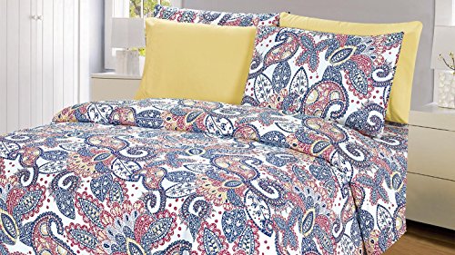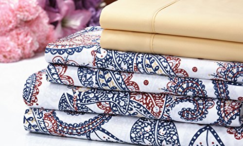 Venetian 1200 Series Soft Brushed Microfiber 6 Piece Deep Pocket Sheet Set - 12 Designs - 2 Bonus Solid Pillowcases (Queen, Gold Paisley)