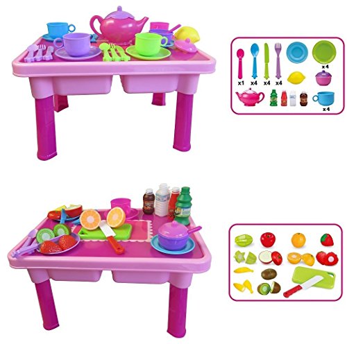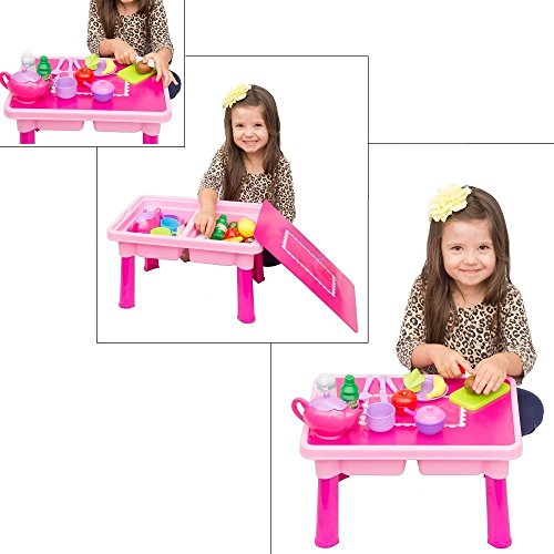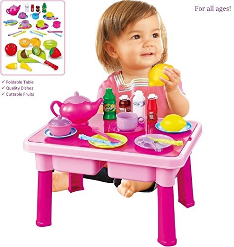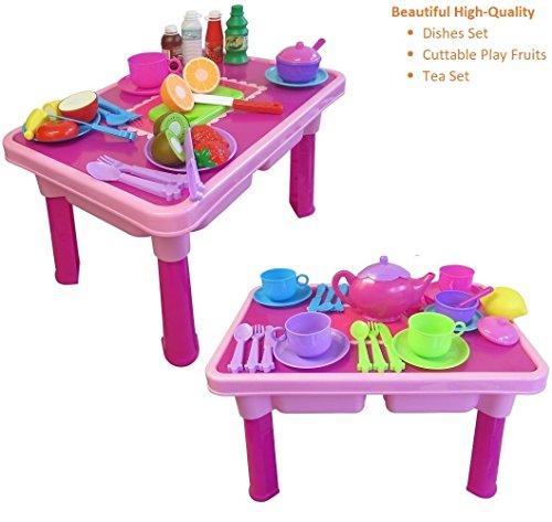 Kids are imaginative, explorative creatures. They love to use their minds to create brilliant settings and scenes to play in, and the only thing that can make their adventures better is having toys that allow them to bring these ideas to life. For children who love to play restaurant or cooking games, there is no better present than the FUNERICA 3 in 1 Play Table, Tea Set and Toy Dishes Set with Cuttable Fruit. This playset is designed specifically for toddlers to enjoy to keep their imaginations going for hours on end.
