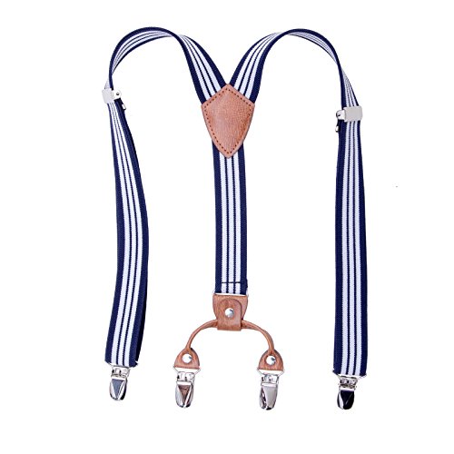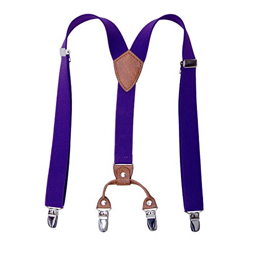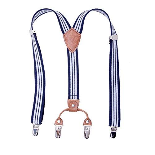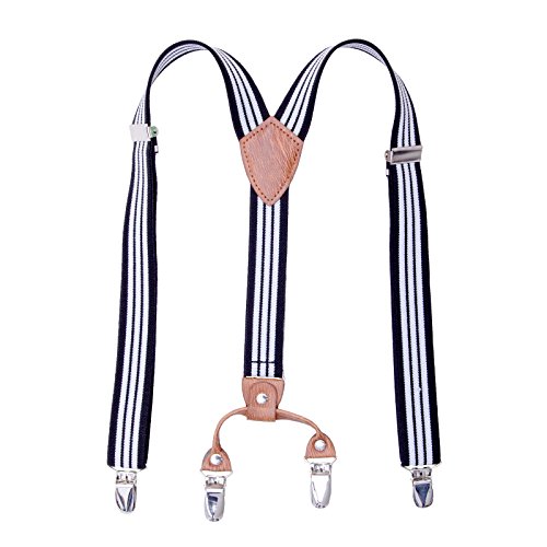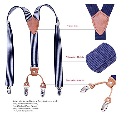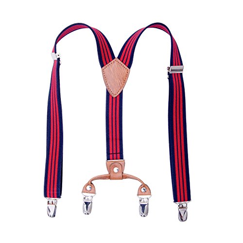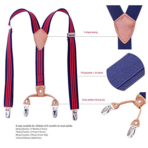 | Adult children Elastic Suspenders Adjustable-Solid Color Striped Y Shape 4 Strong Clips Braces,... |