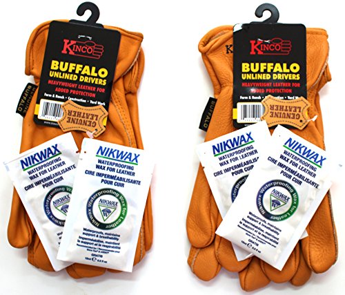 Kinco - 81, Buffalo Leather Work Gloves for Men, 2-pack of Kinco's Toughest & Durable with Nikwax Waterproofing (Medium)