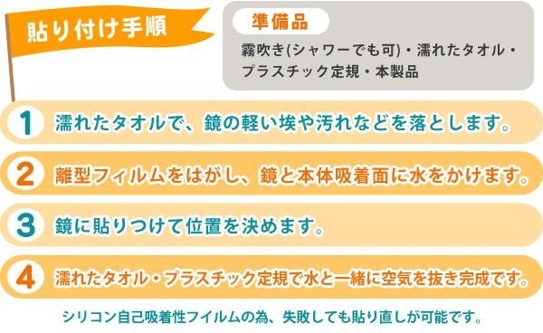 | 仕様 | 用途:お風呂場の鏡・洗面所の鏡等 使用できない場所:曲面の鏡・室外の鏡・その他用途以外の場所 交換時期の目安:約1年 |