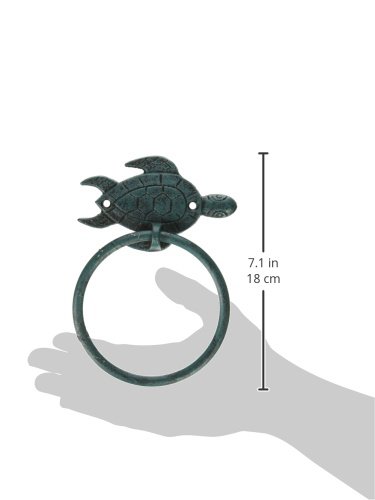 Hampton Nautical K-9008-seaworn Seaworn Blue Cast Iron Sea Turtle Towel Holder 7" - Sea Turtle Decoration - Beach Decor - Cast Iron