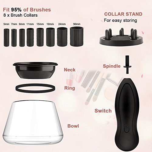 - Economic and Fit - Provide with 8 different sizes of rubber collars fits almost all of your makeup brushes perfectly, which means you can clean many makeup brush sets with this makeup brush cleaner, save your time and money.