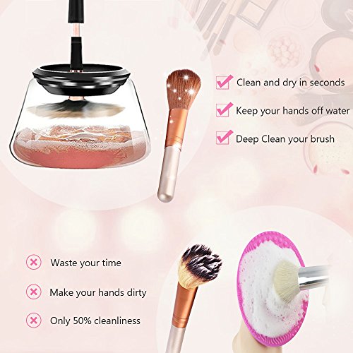 - Completely and Fast Cleaning - This makeup brush cleaner clean and dry all size makeup brushes thoroughly in just a few seconds.