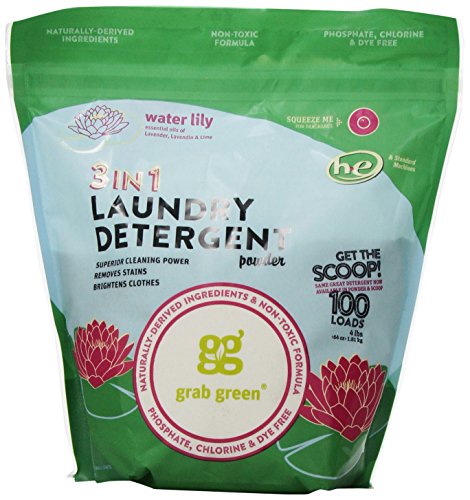 Grab Green Natural 3-in-1 Laundry Detergent Powder, Water Lily, 100 Loads