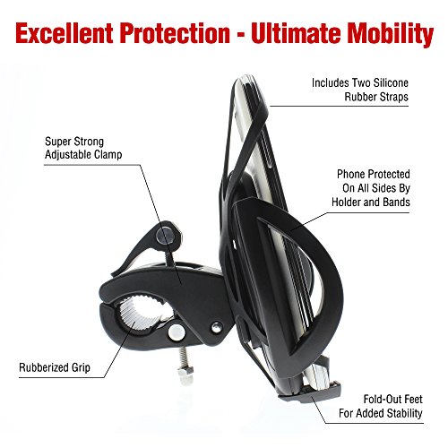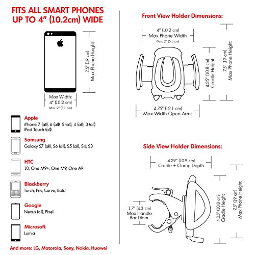 Universal Bike Phone Mount Holder Fits Any Smart Phone: iPhone 7, 7 Plus, 6 Plus, 5S. Bike Mount for Galaxy S6, S5. Google Nexus & Pixel, HTC. Bicycle & Motorcycle Handlebar Phone Cradle