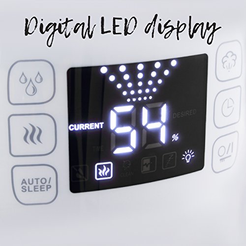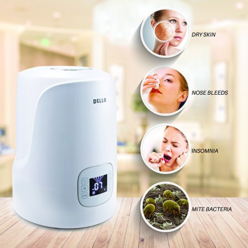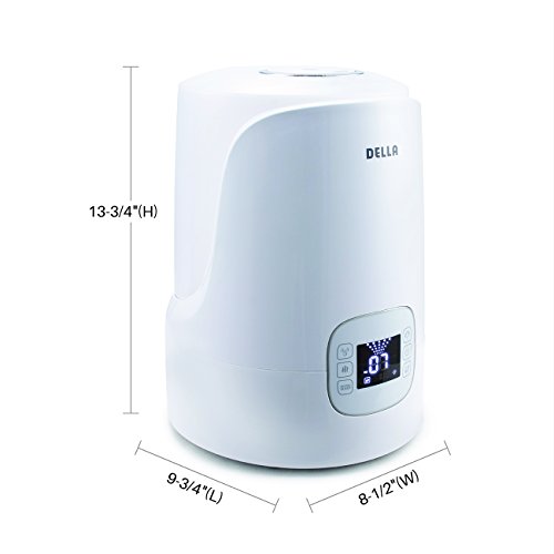 This 4.5L Della Ultrasonic Cool and Warm Mist Humidifier feature a visible mist operation, which allows you to see and feel the soothing sensation for up to 12 hours. This humidifier uses ultrasonic technology for a virtually silent operation and does not require replacement wicks/filters. Feature: Combination two type of misting-ultrasonic cool mist and ceramic warm mist Micro-computer automatically senses air humidity and start operation Increases air moisture for easier breathing and good night's sleep Double mist nozzle designed with 360 degree rotation, providing free setting of mist direction Will alleviate or reduce chapped lips, cracked, itchy dry skin and even seasonal cold symptoms. Operation Pre-Heating - Water is pre-heated to a temperature of 158°F before entering the nebuliser space. The advantage of this is the the room temperature does not drop Cleaning indicator display the appliance should be cleaned Hygrostats (pre-set moisture level) can set desired moisture level between 30-80% Removable 4.5L Tank easily fit under most bathroom sinks Digital LED display screen shows operation conditions Warm and Cool mist operation for year-round use Up to 8 hours present timer to set operation Ion exchange filter effectively reduces the built-up of white powder residue Specifications: Color: White Voltage: 120v/60Hz Display: LED Timer: Yes Moisture Dispersion Type: Warm / Cool Mist Cleaning Indicator: Yes Auto/Sleep Mode: Yes Nozzle Roate: 360 Degree Mist Output: Low/Medium/High Power Consumption: 91w Volume of Water: 4500ml Max Misting Rate: 500ml/h Applicable Area: 20-35m2 Certification: ETL, CE Listed Overall Dimension: 8-1/2"(W) x 9-3/4"(L) x 13-3/4"(H) Package Includes: Ultrasonic Air Humidifier Manual 0 |