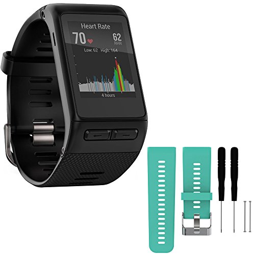 -. Title : Garmin vivoactive HR GPS Smartwatch - X-Large Fit - Black (010-01605-04) with General Brand Silicone Band Strap + Tools for Garmin Vivoactive HR Sport Watch (Teal)