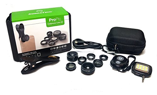 Studio : KobraTech Publisher : KobraTech Binding : Electronics Product Description KobraTech ProPic Cell Phone Lens Kit Make your photos and videos unforgettable with the ProPic iPhone Lens Kit. Here's what's included: Super Wide Angle LensNever leave anyone or anything out again thanks to the 0.36x Super Wide Angle Lens. Features a 145 degree field of view, that's 45% more in every shot compared to the normal iPhone camera 80 degree field of view. Kaleidoscope Lens Be one of the first to get the amazing kaleidoscope lens effect for your phone. Turn boring shots into something amazing. 15x Macro LensGet up close and personal with tiny subject you would normally never be able to see thanks to the 15x Macro lens. Capture stunning detail like never before. 0.63x Wide Angle LensWiden your shots with the 0.63x wide angle lens, perfect for group selfies and landscape shots. CPL LensFilter out unwanted glare and reflections with the CPL Phone Lens , other wise known as the polarizing lens. 2x Telescope LensZoom in 2x closer than you can with your normal phone camera with the 2x telescopic lens. Fisheye LensCreate and awesome bubble effect with the fisheye lens. Perfect for capturing everything you can in the shot while adding unique look. Bonus Items We even include the QuikPic Bluetooth Phone Remote Shutter so you can take wireless shots from up to 30 ft away! Also included is a LED Fill Light, perfect for low light situations. 100% Money Back GuaranteeBe confident in your purchase thanks to KobraTech's special 60 Day 100% money back guarantee a full 1 year warranty, no questions asked. Included in Box