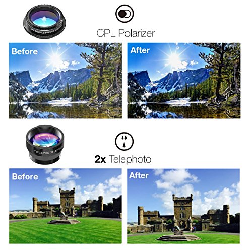 ? 0.36x Wide Angle Lens ? Kaleidoscope Lens ? 15x Macro Lens ? 0.63x Wide Angle Lens ? CPL Lens ? 2x Telescope Lens ? Fish eye Lens ? Bluetooth Phone Shutter Remote ? LED Fill Light ? Protective Carrying Case ? Universal Lens Clip ? Lens Cleaning Cloth 0 |