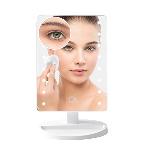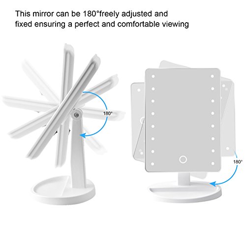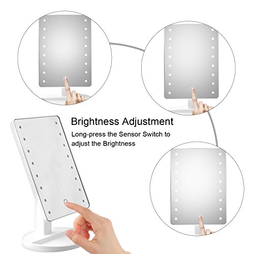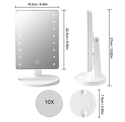 - Smart TOUCH BUTTON: Dimmable touch screen,long press the touch button of this makeup mirror to adjust the brightness freely, turn on/off the light.You can also easily dim to suit your preference,long press to dim the light. More convenient and better to protect your eyes.