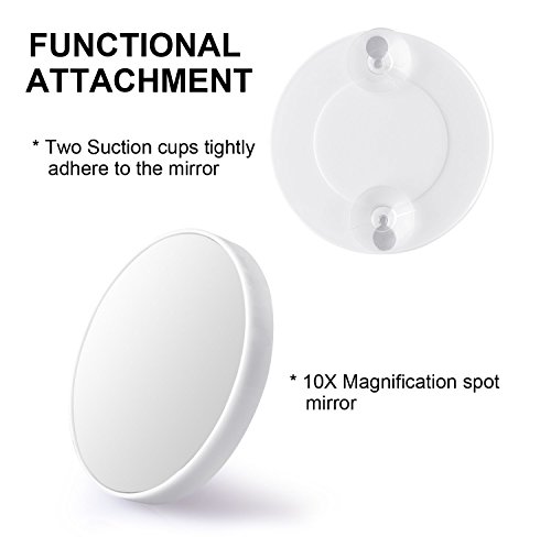 - 10X MAGNIFYING MIRROR &180°FREE ROTATION- Powerful suction adhere to the mirror, make sure every detail of your hair and makeup are in place, show magnified grooming details of eyeliner, mascara, eyebrows. 180-degree free rotation,plenty of adjustment available for vertical orientation, providing the perfect and widest view angle for you