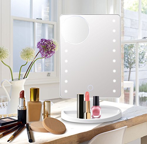 LEDNICEKER Led Lighted Makeup Mirror - 16 Led Vanity Mirror Touch Screen Dimming Mirror with Detachable 10X Magnification Spot Mirror and 180° Rotation Adjustable Stand,Countertop Cosmetic Mirror
