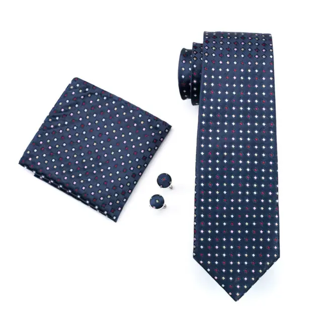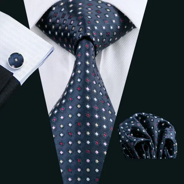 LS-960 뜨거운 판매 남성 넥타이 블루 참신 인쇄 100% 실크 Gravata 자카드 짠 넥타이 손수건 커프스 세트 남성 정장 웨딩 파티
