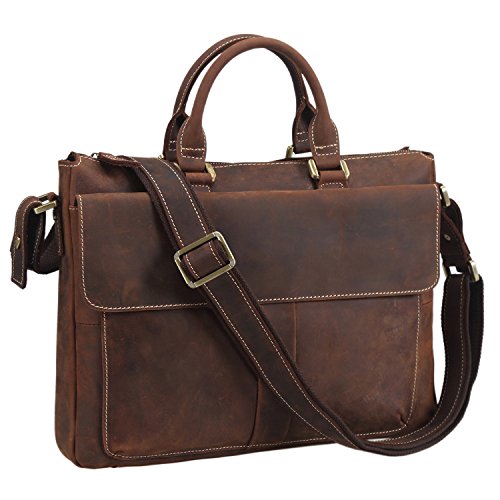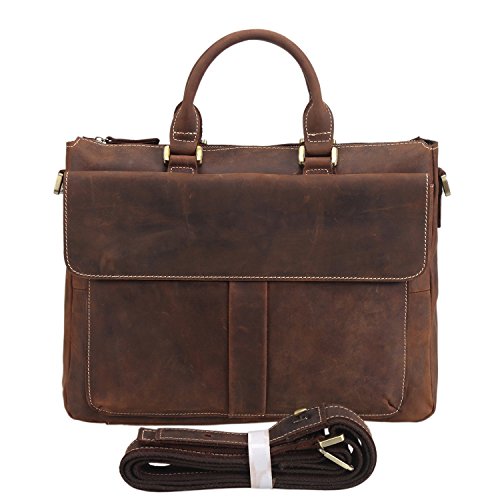 -. Title : Texbo Vintage Simple Cow Leather Durable Laptop Tote Briefcase, 14" Laptop Bag