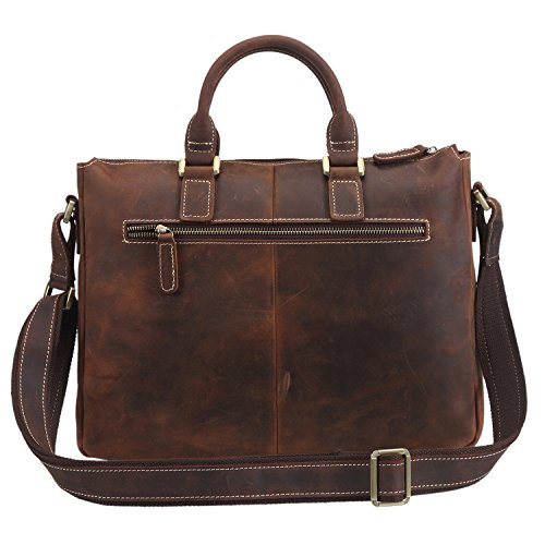 -. Feature : 100% Brand New & High Quality, Made by Top Crazy-Horse Cow Leather, Vintage style, Simple and Durable / Dimension:Length 15"/38cm * Width 2.5"/6.5cm * Height 12"/30.5cm, Net Weight:1.2KG / Laptop Padding inside fits up to 14 inch laptop, Front pocket and Interior pockets and Backside zipper pocket can easy to take your PAD,Cell Phone,Pen or Wallet easily / Durable Simple bag ,with Adjustable shoulder strap together / Natural Cow leather, The distinguishing feature of crazy-horse Cow leather is that leather may have wrinkles,scratches that are inherent characteristics . When you scrape it widely, the trace will be appeared .If the trace is not obvious, you can wipe it gently and then the trace will be less